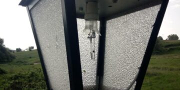 Όπως βλέπετε στις φωτογραφίες του siera fm, τα φανάρια είναι τρυπημένα με σκάγια.