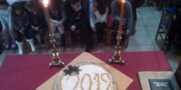 Η συνάντηση του Κατηχητικού μας, η πρώτη για το νέο έτος, που πραγματοποιήθηκε το Σάββατο 12 Ιανουαρίου 2019 με αφορμή την κοπή της Βασιλόπιτας είχε απρόσμενα μεγάλη συμμετοχή, αφού παιδιά και γονείς αψήφισαν το κρύο και τη δυσκολία μετακίνησης που έχει προξενήσει το συσσωρευμένο χιόνι στους δρόμους της Σιάτιστας.