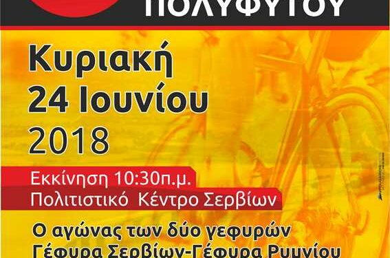 Αναβάλλεται η διεξαγωγή του ποδηλατικού γύρου της Λίμνης πολυφύτου, για την επόμενη Κυριακή 1η Ιουλίου, λόγω των προβλεπόμενων δυσμενών καιρικών συνθηκών που θα επικρατούν στην περιοχή μας.