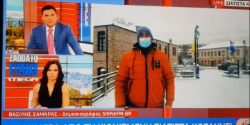 Το χιονισμένο τοπίο της πόλης της Σιάτιστας, αλλά και τα νεότερα δεδομένα για τον κορονοϊό, μετέφερε ο siera fm, στο Mega channel και την εκπομπή Mega Σαββατοκύριακου με το Ντίνο Σιωμόπουλο και τη Στέλλα Γκαντώνα.