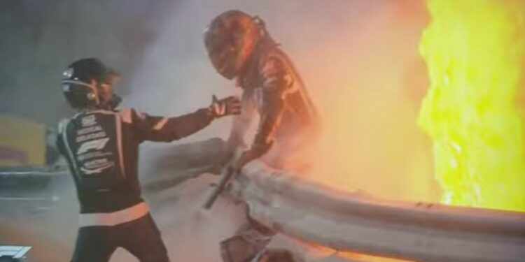 Ο Grosjean βγήκε ζωντανός μέσα από διαλυμένο όχημα μέσα στις φλόγες.