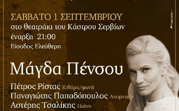 Στο θεατράκι του κατάφυτου λόφου του Κάστρου Σερβίων, και σε μια μαγευτική τοποθεσία με θέα στα Σέρβια και στη λίμνη, οι: