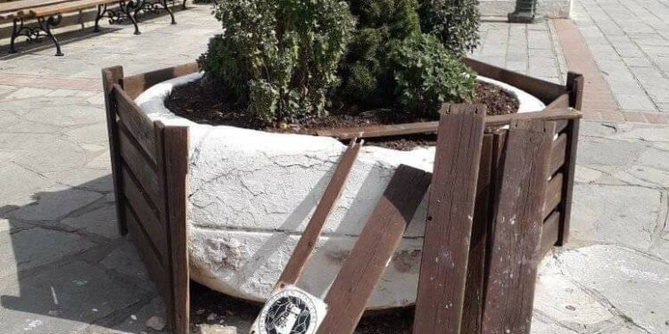 Όπως βλέπετε στις φωτογραφίες, έχουν σπάσει τα ξύλινα κασπώ και τα κουτιά για την ανακύκλωση.