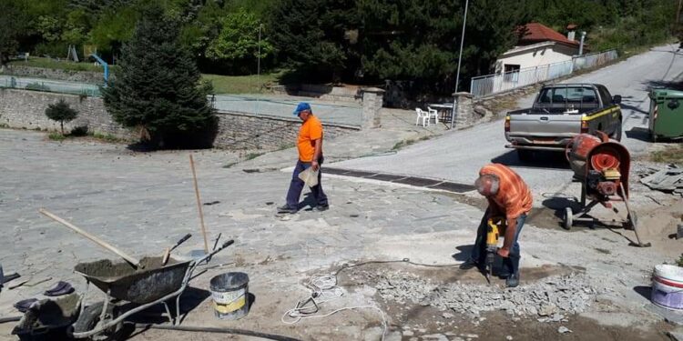 Εργασίες αποκατάστασης πραγματοποιούνται στη Δάφνη του Δήμου Βοΐου στο οδικό δίκτυο, σε πλακόστρωτα και δρόμους του χωριού.