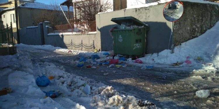 Οι κάδοι σκουπιδιών όπως βλέπετε στη φωτογραφία γέμισαν και δεν γίνεται αποκομιδή, αφού τα απορριμματοφόρα κινούνται χωρίς αλυσίδες.