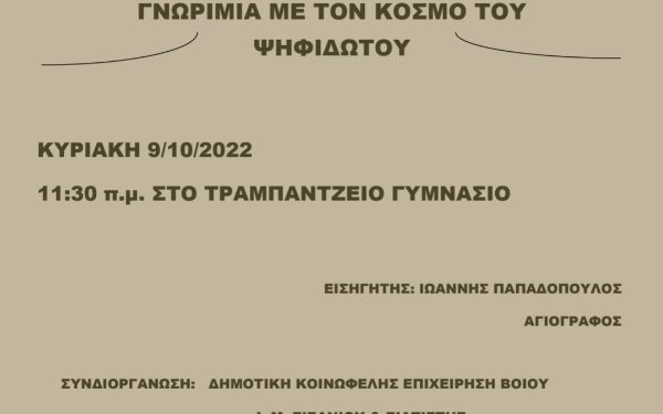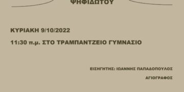 Η εκδήλωση θα πραγματοποιηθεί την Κυριακή 9 Οκτωβρίου 2022 στις 11πμ στο Τραμπάντζειο Γυμνάσιο Σιάτιστας με ομιλητή τον Αγιογράφο Ιωάννη Παπαδόπουλο