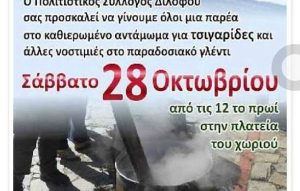 Ο Πολιτιστικός Σύλλογος Διλόφου σας προσκαλεί το Σάββατο 28 Οκτωβρίου 2017 στο Δίλοφο Βοΐου στην Γουρουνοχαρά στην Πλατεία του χωριού.