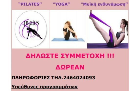 Θα λειτουργήσουν πρωινά τμήματα: Pilates, Yoga, Μυικής ενδυνάμωσης.