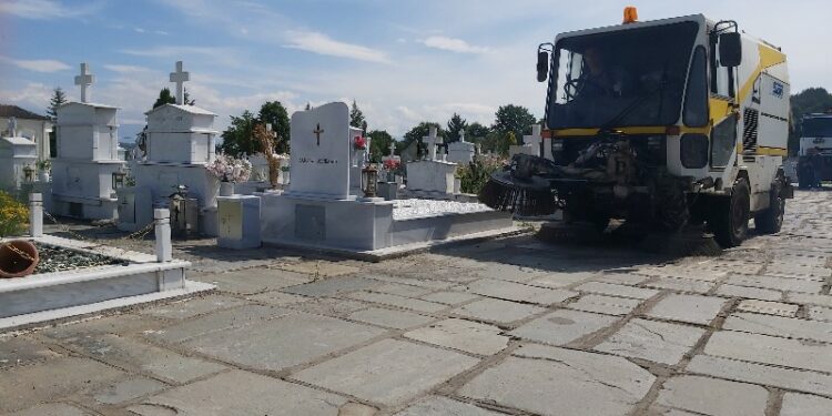 Εργασίες καθαρισμού και αποψίλωσης για τον ευπρεπισμό του εσωτερικού και εξωτερικού χώρου του νεκροταφείου Γρεβενών πραγματοποιηθήκαν από ειδικό συνεργείο του Δήμου και υπό την εποπτεία των Τμημάτων Πρασίνου, Περιβάλλοντος και Κοινωνικής Μέριμνας.