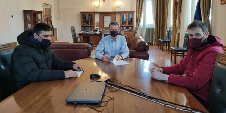 Τη σύμβαση του έργου «Βελτίωση αντιπλημμυρικών και οδικών υποδομών οικισμών Δ.Ε. Αιανής» υπέγραψαν ο δήμαρχος Κοζάνης Λάζαρος Μαλούτας και ο ανάδοχος του έργου, παρουσία του διευθυντή Τεχνικών Υπηρεσιών Μιχάλη Πεχλιβανίδη.