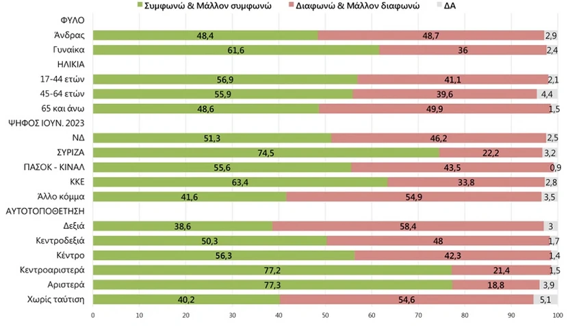 Αναλυτικότερα, το 54,8% των συμμετεχόντων στην έρευνα της Marc απαντά καταφατικά στο ερώτημα αν συμφωνεί στη νομοθέτηση και στην Ελλάδα του πολιτικού γάμου μεταξύ των ατόμων του ιδίου φύλου, όπως ισχύει στις ΗΠΑ και στις περισσότερες χώρες στις ΕΕ.