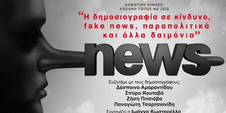 Με βάση τα παραπάνω η Δημοτική Κίνηση “Κοζάνη Τόπος να ζεις” διοργανώνει εκδήλωση-συζήτηση με θέμα «Η δημοσιογραφία σε κίνδυνο, fake news, παραπολιτικά και άλλα δαιμόνια» και καλεσμένους ομιλητές τους δημοσιογράφους Δέσποινα Αμαραντίδου, Σπύρο Κουταβά, Ζήση Πιτσιάβα και Παναγιώτη Τσαρτσιανίδη με τους οποίους θα συζητήσουμε το θέμα τόσο σχετικά με την τοπική όσο και με την παγκόσμια διάστασή του.