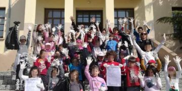 Β) Μαθητές και εκπαιδευτικοί, χωρισμένοι σε ομάδες, προχώρησαν στον καθαρισμό περιοχών του χωριού και του προαύλιου του σχολείου συμμετέχοντας στο πρόγραμμα «Let’s do it Greece».