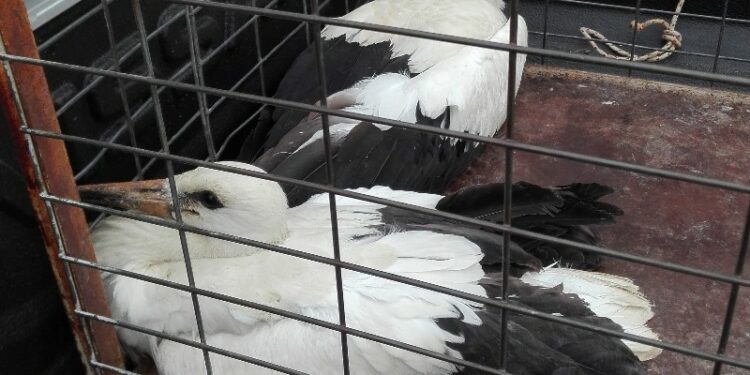 Για την ασφαλή μεταφορά των δυο πελαργών, η οποία πραγματοποιήθηκε χθες 3-9-2019 με υπηρεσιακό όχημα της Διεύθυνσης Δασών Φλώρινας, χρησιμοποιήθηκε σιδερένιος κλωβός μεγάλων διαστάσεων εξασφαλίζοντας παράλληλα και την άνετη παραμονή τους σε αυτό κατά τη διάρκεια μεταφοράς τους.
