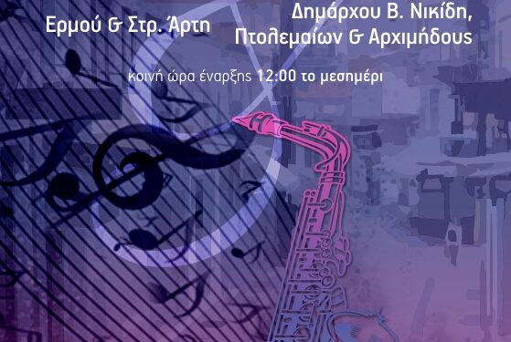 Γιορτές Πεζόδρομου με Jazz music στον πεζόδρομο Στρ. Άρτη & Ερμού, καθώς και στον πεζόδρομο Δημάρχου Β.Νικίδη – Πτολεμαίων & Αρχιμήδους,