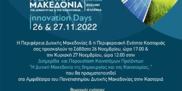 Διημερίδα διοργανώνει η Περιφέρεια Δυτικής Μακεδονίας με θέμα: “Η Δυτική Μακεδονία της Δημιουργίας και της Καινοτομίας”.