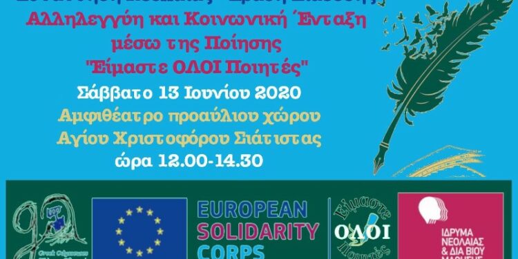 Εάν απάντησες ΝΑΙ στις παραπάνω ερωτήσεις, τότε αυτή είναι είναι ευκαιρία του να συμμετέχεις στο ευρωπαϊκό προγράμμα νεολαίας «Ευρωπαϊκό Σώμα Αλληλεγγύης: Είμαστε ΟΛΟΙ ποιητές». Κλείνοντας το πρόγραμμά μας που υλοποιείται στην Κατερίνη από το καλοκαίρι του 2019 θα διοργανώσουμε μία εκδήλωση διάδοσης το Σάββατο 13 Ιουνίου στη Σιάτιστα ως ομάδα νέων «Έλληνες Οδυσσείς»!