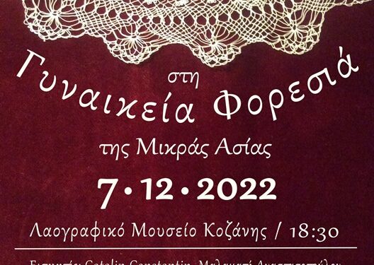 Σε αυτό τον τελευταίο μήνα του 2022, την Τετάρτη 7 Δεκεμβρίου 2022 και ώρα 18:30 πραγματοποιείται στο Λαογραφικό Μουσείο Κοζάνης μία πρωτότυπη εκδήλωση- αφιέρωμα στη Γυναικεία Φορεσιά της Μικράς Ασίας.