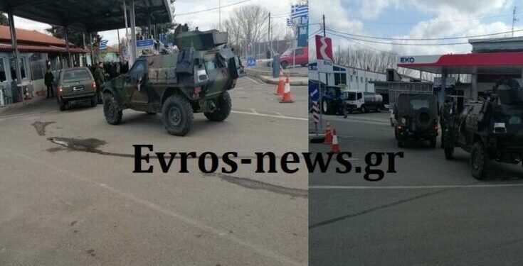 Τεθωρακισμένα οχήματα του ελληνικού στρατού ενισχύουν τις δυνάμεις της Αστυνομίας που βρίσκονται στις Καστανιές Έβρου, έπειτα κι από το άνοιγμα των συνόρων από την Τουρκία.