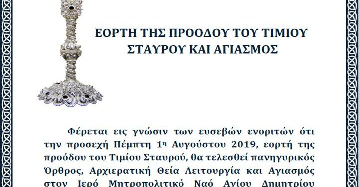 Ενορία Αγίου Δημητρίου Σιάτιστας: Θεία λειτουργία την Πέμπτη 1 Αυγούστου