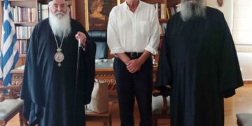 Εθιμοτυπική επίσκεψη πραγματοποίησε σήμερα Τετάρτη 12/08/2020, ο Σεβασμιώτατος Μητροπολίτης Σερβίων και Κοζάνης κ.κ.Παύλος στον Αντιπεριφερειάρχη Π.Ε. Κοζάνης Γρηγόρη Τσιούμαρη, συνοδευόμενος από τον Πρωτοσύγκελο της Ιεράς Μητροπόλεως πατέρα Χριστοφόρο.