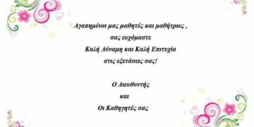 Ευχές για καλή επιτυχία στέλνουν οι εκπαιδευτικοί του ΓΕΛ Νεάπολης στους μαθητές τους..