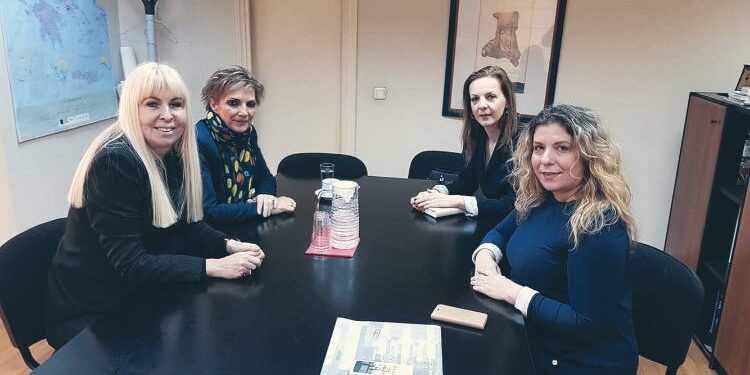 Η πολιτευτής της Νέας Δημοκρατίας κ. Καλλιόπη Σεμερτζίδου επισκέφτηκε την Γενική Γραμματέα Οικογενειακής Πολιτικής και Ισότητας των Φύλων, Μαρία Συρεγγέλα στο Υπουργείο Εργασίας και Κοινωνικών Υποθέσεων, συνοδευομένη απο τη Γραμματέα Αγροτικών Φορέων της Νέας Δημοκρατίας Μαίρη Τριανταφυλλοπούλου και τη Γραμματέα Οικογενειακής Πολιτικής και Ισότητας των Φύλων Βικεντία Συροπούλου .