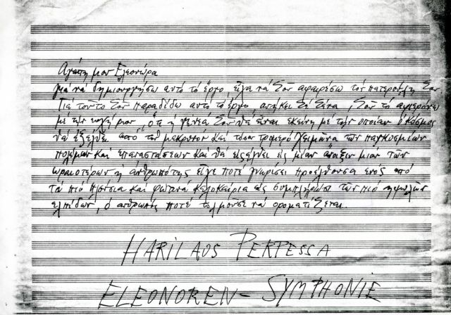 Όπως συνέβη όταν έπεσα σε μια ηλεκτρονική δημοσίευση για τον Χαρίλαο Περπέσα (1907-1995), χαζεύοντας (κακιά συνήθεια να πω την αλήθεια) στο διαδίκτυο. Στην δημοσίευση αυτή διάβασα για μια γλυκιά στιγμή της πολυτάραχης ζωής του Περπέσα. Πρόκειται για μια αφιέρωση του στην κόρη του Ελεονόρα, γραμμένη σε μια παρτιτούρα. Παραθέτω τις δυο πρώτες γραμμές: