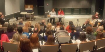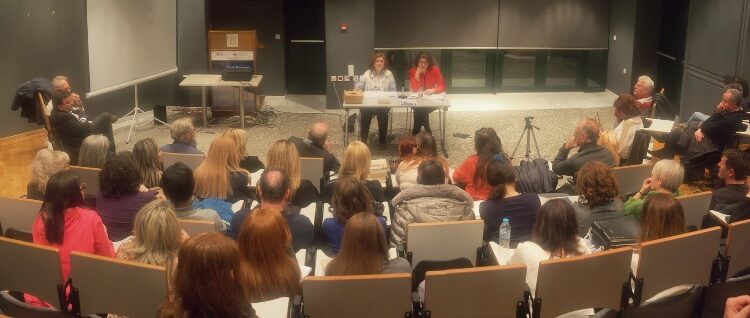 Στην εκδήλωση της Τετάρτης 27 Μαρτίου βασική ομιλήτρια στο Αμφιθέατρο της Βιβλιοθήκης ήταν η κ. Ελένη Καλοκαιρινού, Αναπληρώτρια Καθηγήτρια Φιλοσοφίας του ΑΠΘ, που παρουσίασε με ιδιαίτερα γλαφυρό και εμπεριστατωμένο τρόπο το θέμα: «Ιατρικές τεχνολογίες υπό το πρίσμα των βιοηθικών και των ανθρωπιστικών επιστημών».