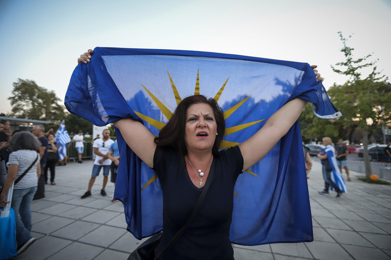 Συγκέντρωση διαμαρτυρίας για τη Συμφωνία των Πρεσπών -λίγο πριν και κατά τη διάρκεια της ομιλίας του προέδρου της ΝΔ Κυριάκου Μητσοτάκη στο Συνεδριακό Κέντρο «Ι.Βελλιδης» -πραγματοποιήθηκε έξω από τη νότια πύλη της ΔΕΘ.