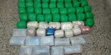 Ειδικότερα, απογευματινές ώρες χθες (19-08-2017) οι ανωτέρω εντοπίστηκαν να έχουν εισέλθει παράνομα στη χώρα πεζή και να μεταφέρουν, από κοινού με άλλα -3- άτομα που αναζητούνται, -5- ταξιδιωτικούς σάκους που περιείχαν -66- συσκευασίες κάνναβης, βάρους -78- κιλών και -460- γραμμαρίων.