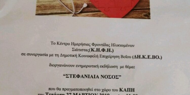 Ενημέρωση για τη στεφανιαία νόσο από τον καρδιολόγο Σωτήρη Ζιώγα θα πραγματοποιηθεί στο ΚΗΦΗ Σιάτιστας την Τετάρτη 27 Μαρτίου στις 11 το πρωί