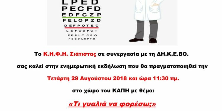 Ενημερωτική εκδήλωση από το ΚΗΦΗ Σιάτιστας με θέμα “Τι γυαλιά να φορέσω ” θα πραγματοποιηθεί την Τετάρτη  29 Αυγούστου