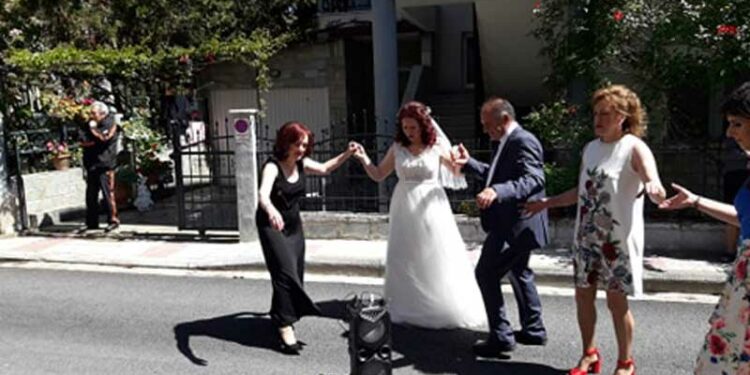Η μουσική και ο χορός της νύφης την Κυριακή το μεσημέρι έδωσαν μια ευχάριστη νότα στη γειτονιά, η οποία βγήκε έξω να ευχηθεί στους μελλόνυμφους . Περαστικοί περιπατητές σταμάταγαν, μικροί και μεγάλοι έδιναν τις ευχές τους ,με τον κόσμο μουδιασμένο ακόμα και στην χαρά ενός γάμου δίπλα στο σπίτι τους.