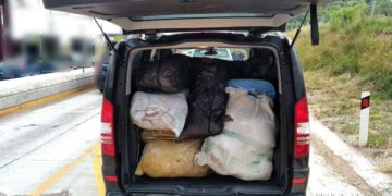 Αναλυτικότερα, μετά από οργανωμένη αστυνομική επιχείρηση, χθες το μεσημέρι σε περιοχή της Κοζάνης ακινητοποιήθηκε για έλεγχο Ι.Χ.Ε. αυτοκίνητο, με οδηγό τον 25χρονο και συνοδηγό τον 32χρονο αλλοδαπό, κατά διάρκεια του οποίου βρέθηκαν εντός του χώρου αυτού -17- τσουβάλια που περιείχαν -59- πλαστικές συσκευασίες με ακατέργαστη κάνναβη, συνολικού βάρους -208- κιλών και -580- γραμμαρίων.