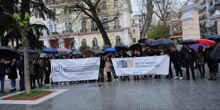 Σήμερα, Δευτέρα 3 Απριλίου, το Σωματείο Φωτογράφων και Εικονοληπτών Κεντρικής Μακεδονίας, η Ένωση Καλλιτεχνών Φωτογράφων ΚεντροΔυτικής Μακεδονίας, το Σωµατείο Φωτογράφων Νομού Καβάλας και το Σωµατείο Επαγγελµατιών Φωτογράφων Ν. Ξάνθης “Κύκλωψ”, μέλη της Πανελλήνιας Ομοσπονδίας Φωτογράφων, μετά από απόφαση της Γενικής Συνέλευσης της Οµοσπονδίας, πραγματοποίησαν συγκέντρωση διαμαρτυρίας στο Υπουργείο Εσωτερικών (τομέας Μακεδονίας – Θράκης) της Θεσσαλονίκης.