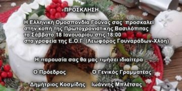 Η Ελληνική Ομοσπονδία Γούνας σας προσκαλεί στην κοπή της Πρωτοχρονιάτικης Βασιλόπιτας το Σάββατο 18 Ιανουαρίου στα γραφεία της Ε.Ο.Γ.