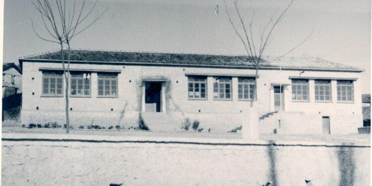 Το διδακτήριο ανηγέρθη επί τουρκοκρατίας το 1908. Είναι διώροφον. Εις τον άνω όροφο υπάρχουν δύο αίθουσες διδασκαλίας στενόχωροι και μη επαρκώς αεριζόμενοι. Υπάρχουν 27 πολύεδρα θρανία σχεδόν σεσαθρωμένα, 2 τραπέζια, 2 καθίσματα, 2 μικροί πίνακες, 1 αρχειοθήκη παλιά,10 χάρτες παλιούς εκ των οποίων 2 γεωφυσικοί. Μαθητές 138 (13/2/1938).
