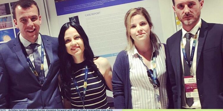 Επίσης σε συνεργασία με την φυσικοθεραπεύτρια Ευφροσύνη Στεργίου παρουσίασαν με μορφή αφίσας την εργασία: «Neuromuscular control and rehabilitation approach of the foot and ankle recovering from acute injury”. Η συγκεκριμένη ερευνητική εργασία αφορούσε τον ρόλο του νευρομυϊκού ελέγχου και τη στοχευμένη φυσικοθεραπευτική προσέγγιση και αποκατάσταση (της ποδοκνημικής και του αστραγάλου) μετά από άμεσο τραυματισμό σε ποδοσφαιρικό αγώνα.