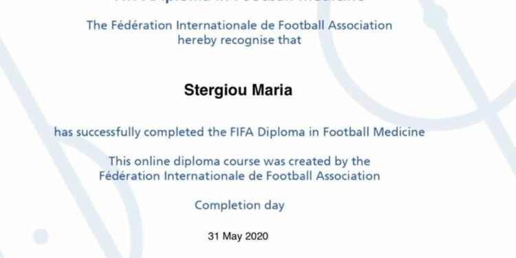 Μαρία Στεργίου. Πιστοποίηση από τη FIFA για την καταξιωμένη φυσικοθεραπεύτρια