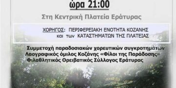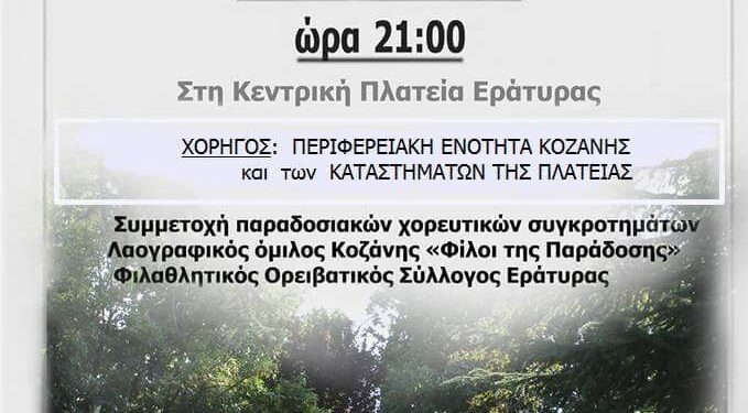 Μουσική βραδιά θα πραγματοποιηθεί στην Εράτυρα το Σάββατο 26 Αυγούστου.