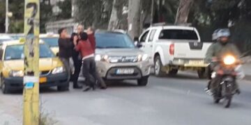 Ο ένας ήταν οδηγός ταξί και ο άλλος πιο μεγάλης ηλικίας και ο διαπληκτισμός τους κατέληξε σε μπουνιές και ξύλο, με μία γυναίκα ανάμεσα τους να προσπαθεί να τους χωρίσει. Τελικά… χώρισαν αφού επενέβησαν οι πιο ψύχραιμοι με τον έναν οδηγό να κάνει χειρονομίες.