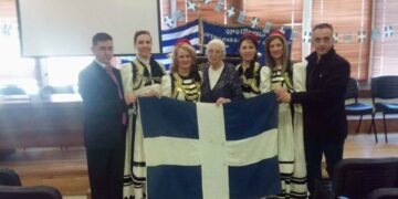 Εκεί ήταν και Άννα Γκουτζιαμάνη Στυλιανάκη η οποία χάρισε τη σημαία στο σύλλογο και παρέλαβε ένα αναμνηστικό από τους Μαρκίδες για την προσφορά της.
