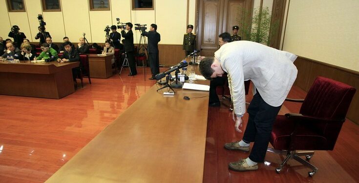 Οι αρχές της Βορείου Κορέας φρόντισαν για τη μετάδοση σε κάθε τηλεοπτικό δέκτη στη χώρα της δημόσιας ομολογία του 21χρονου αμερικανού φοιτητή που είχε συλληφθεί για «τέλεση εχθρικής ενέργειας εναντίον του κράτους»: Ο φοιτητής ομολόγησε την τέλεση της πράξης -είχε… κλέψει προπαγανδιστικό πανό από το ξενοδοχείο του- και κλαίγοντας ικεύτευσε για την απελευθέρωσή του.