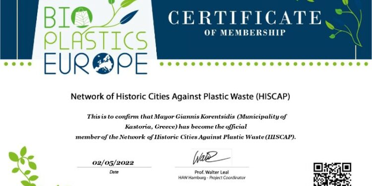 Στο Δίκτυο Ιστορικών Πόλεων κατά των Πλαστικών Αποβλήτων που στόχο έχει την υποστήριξη ιστορικών πόλεων και δήμων για την αντιμετώπιση των προβλημάτων που προκαλούνται από πλαστικά απόβλητα εντάχθηκε ο Δήμος Καστοριάς, στο πλαίσιο του έργου BIO-PLASTICS EUROPE, του Πανεπιστημίου του Αμβούργου.