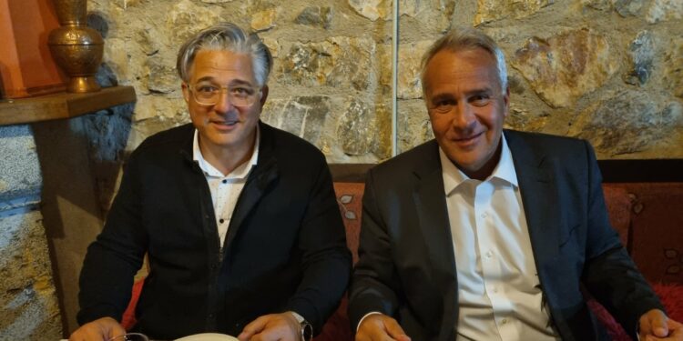 Στη χαλαρή συζήτηση, ο Δήμαρχος είχε την ευκαιρία να θέσει στον Υπουργό, σημαντικά θέματα που αφορούν το Δήμο.