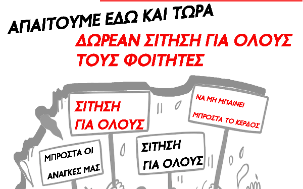 ΑΠΑΙΤΟΥΜΕ ΤΩΡΑ ΔΩΡΕΑΝ ΣΙΤΙΣΗ ΓΙΑ ΟΛΟΥΣ ΤΟΥΣ ΦΟΙΤΗΤΕΣ!