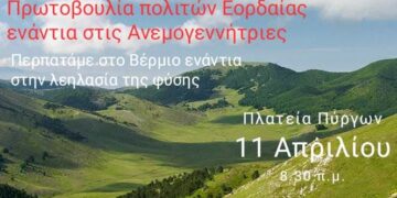 Τη δράση διοργανώνει η Πρωτοβουλία Πολιτών Εορδαίας Ενάντια Στις Ανεμογεννήτριες και το Συντονιστικό Σωματίων Ενάντια Στην Απολιγνιτοποίηση.