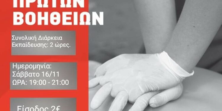 Να σημειώσουμε ότι το σεμινάριο είναι ανοικτό για όλο το κόσμο που θέλει να συμμετάσχει και η είσοδος θα προστεθεί για την προσπάθεια της αγοράς ενός δημόσιου απινιδωτή.