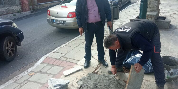 Σήμερα έγιναν και οι αποκαταστάσεις στο πλακόστρωτο.